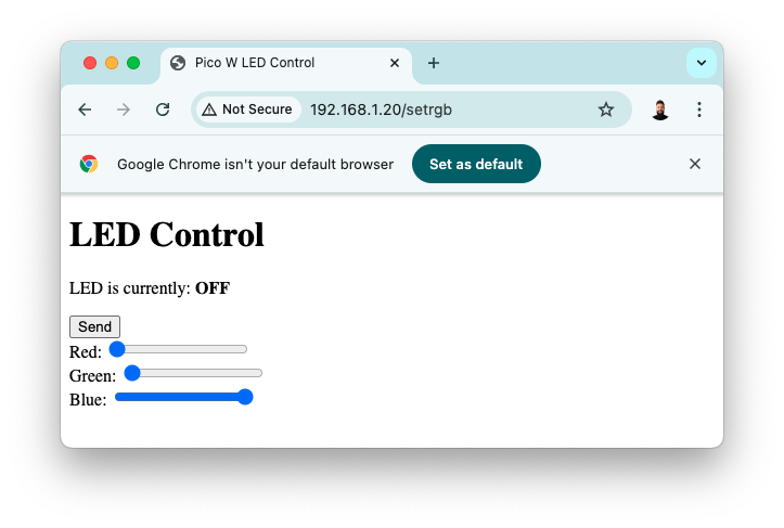 In this post, we will see how to set up a basic HTTP server to control RGB stripes through a simple user interface. It is strongly recommended to see the preceding post before proceeding.