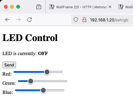 At this stage, the RGB strips can be controlled directly via a web browser, providing a core setup for further development. This serves as the groundwork for integrating the system into more advanced environments, such as Home Assistant. The next post will delve into Homebridge integration in greater details. For more information, please see: https://github.com/mekiisupertramp/wallframe/blob/main/http_example.py