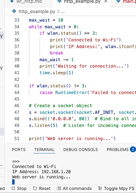 Let’s set-up a simple HTTP server which allows the control of the on-board LED with simple HTTP GET commands.