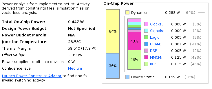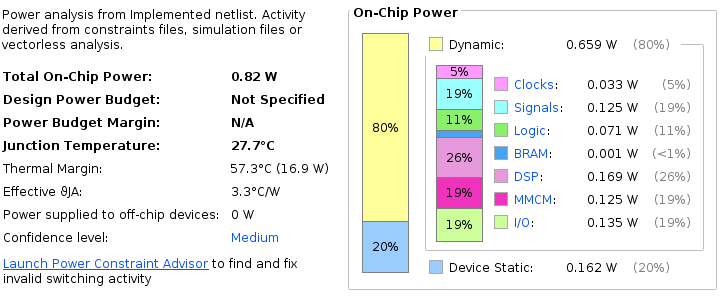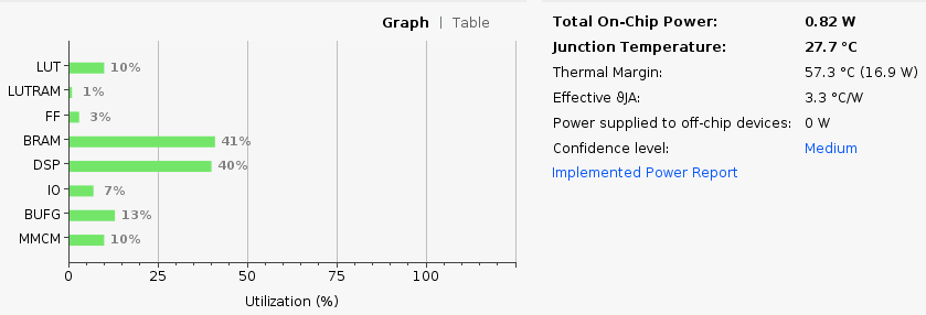 The power consumption is greater than first release of Mandelbrot calculation. This is mostly due to the use of DSPs and more logical elements as you can see below:
